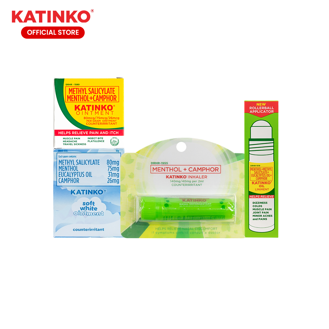 Katinko Min Gift Set - Ointment 10g, Inhaler 2ml, Soft White 10g and Oil Liniment Roll-on 10ml